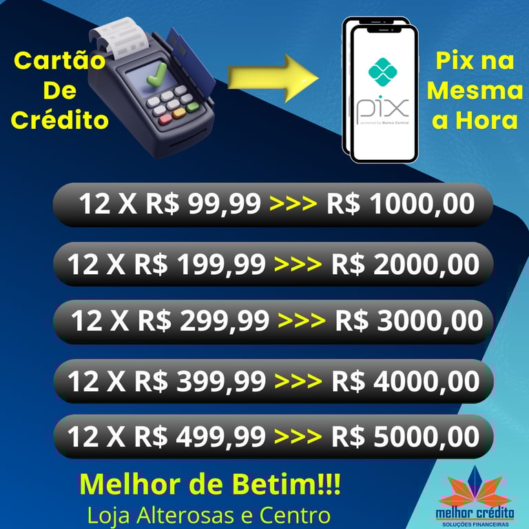 Para conseguir seu empréstimo com cartão de crédito não é necessário ter nome limpo, apenas um cartão de crédito com limite disponível.